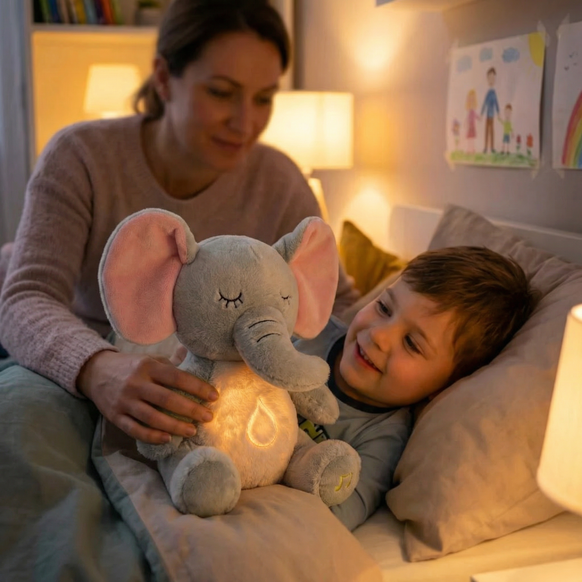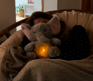 Meine Tochter schläft jeden Abend mit dem Elefanten ein und wacht viel ausgeruhter auf.