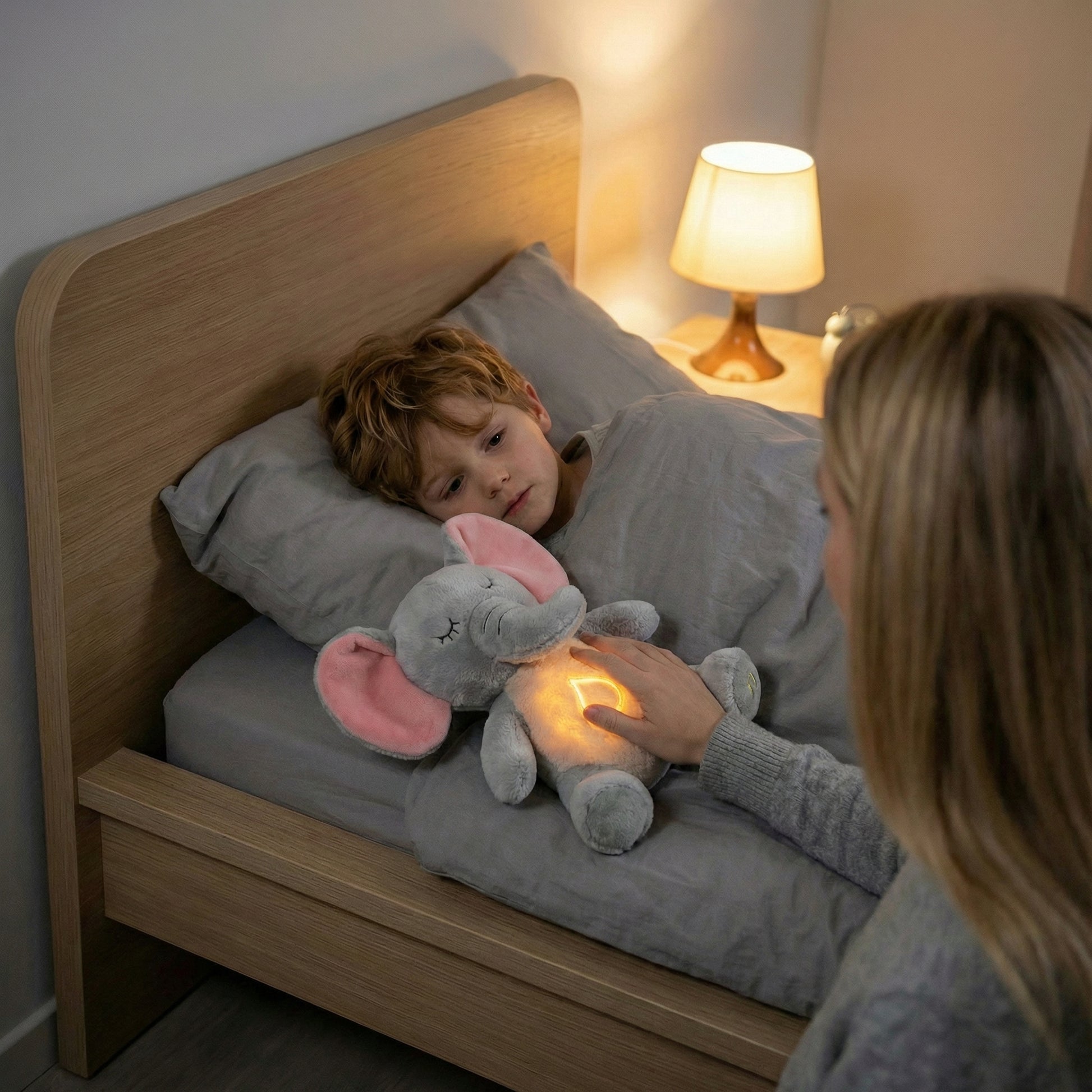 Der Bauch von SleepHug™ bewegt sich wie ein ruhiger Atem – langsam, gleichmäßig und beruhigend. Kinder spüren diesen Rhythmus sofort und beginnen instinktiv mitzuschwingen. Dieses Muster sendet dem Körper ein klares Signal: „Du bist sicher. Du kannst entspannen.“ Das warme Bauchlicht vermittelt zusätzlich Nähe und Geborgenheit, ohne zu hell zu sein.