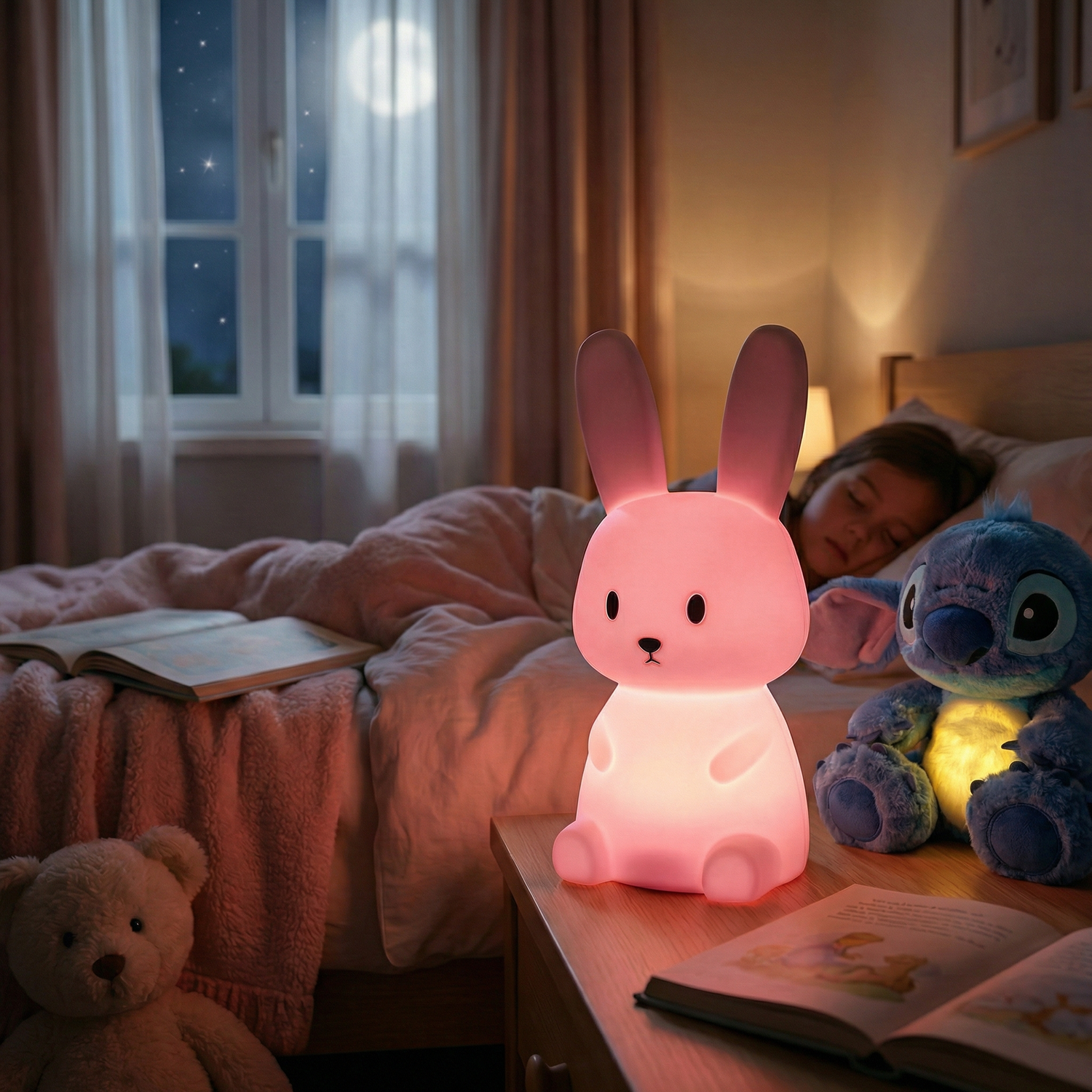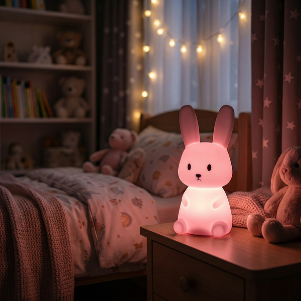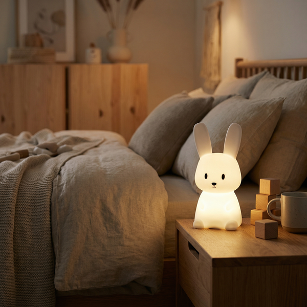 Luminacht erzeugt warmes, blendfreies Licht und verfügt über einen integrierten Timer – so können Kinder sanft einschlafen und Eltern ruhige, entspannte Nächte genießen.